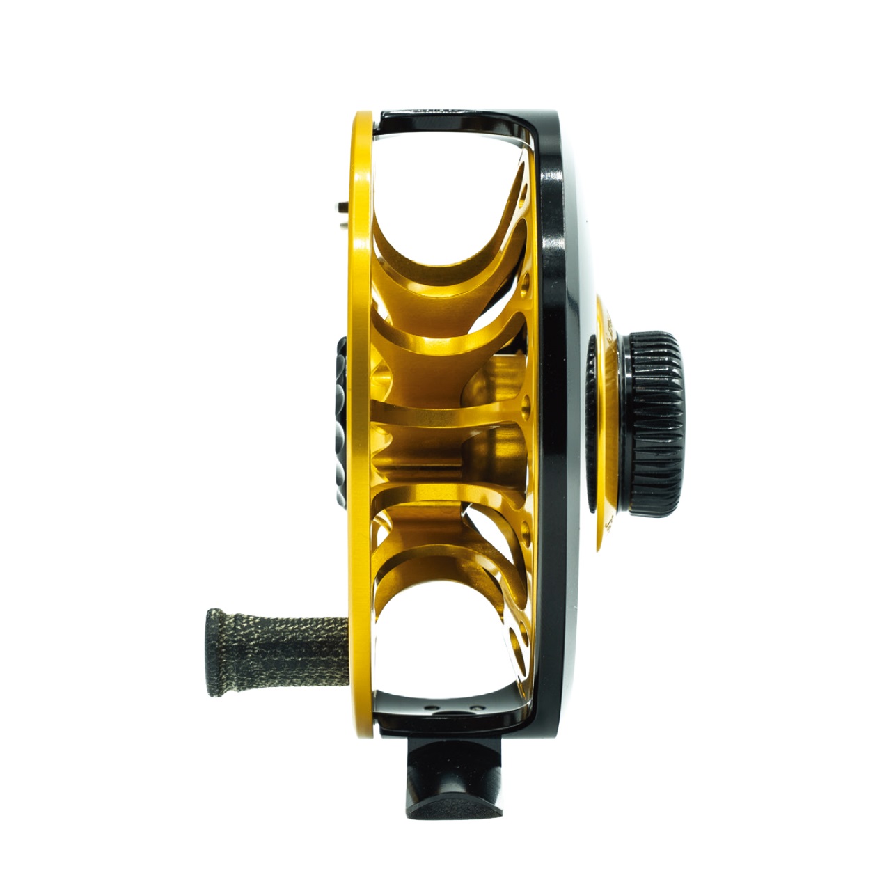 また、アルミ削り出しフレームと光沢のあるハイグロスブラックフィニッシュが、時を超えても色あせない存在感を放ちます。耐久性と美しさを兼ね備えたアルミハンドル、確実な着脱を実現するプッシュボタン式スプールリリース、そしてラインのメモリーを軽減するラージアーバー設計。細部に至るまで、すべてが“究極の完成度”を追求しています。