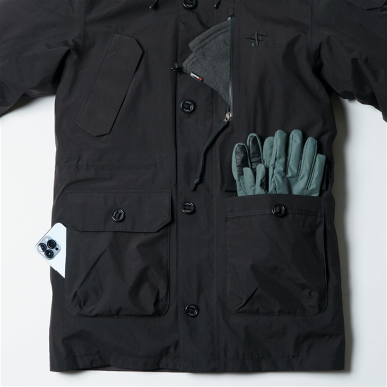 透湿防水素材「GORE-TEXファブリクス」によるアウターシェルが、雨雪の降る過酷な環境でも身体をしっかりと守ります。