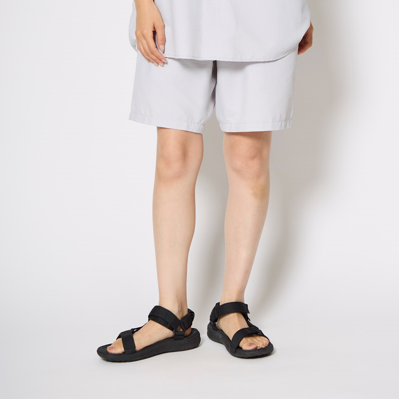 凹凸のあるシアサッカー生地を採用。汗をかいてもベタつきにくく、肌離れの良いサラッとした質感。