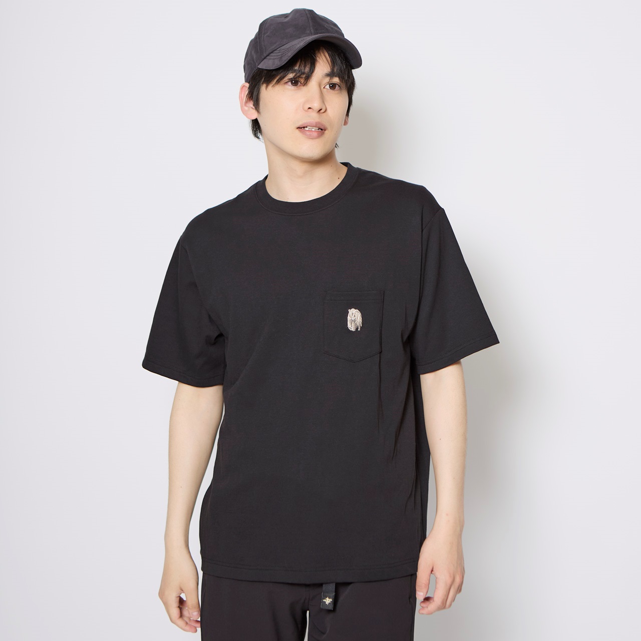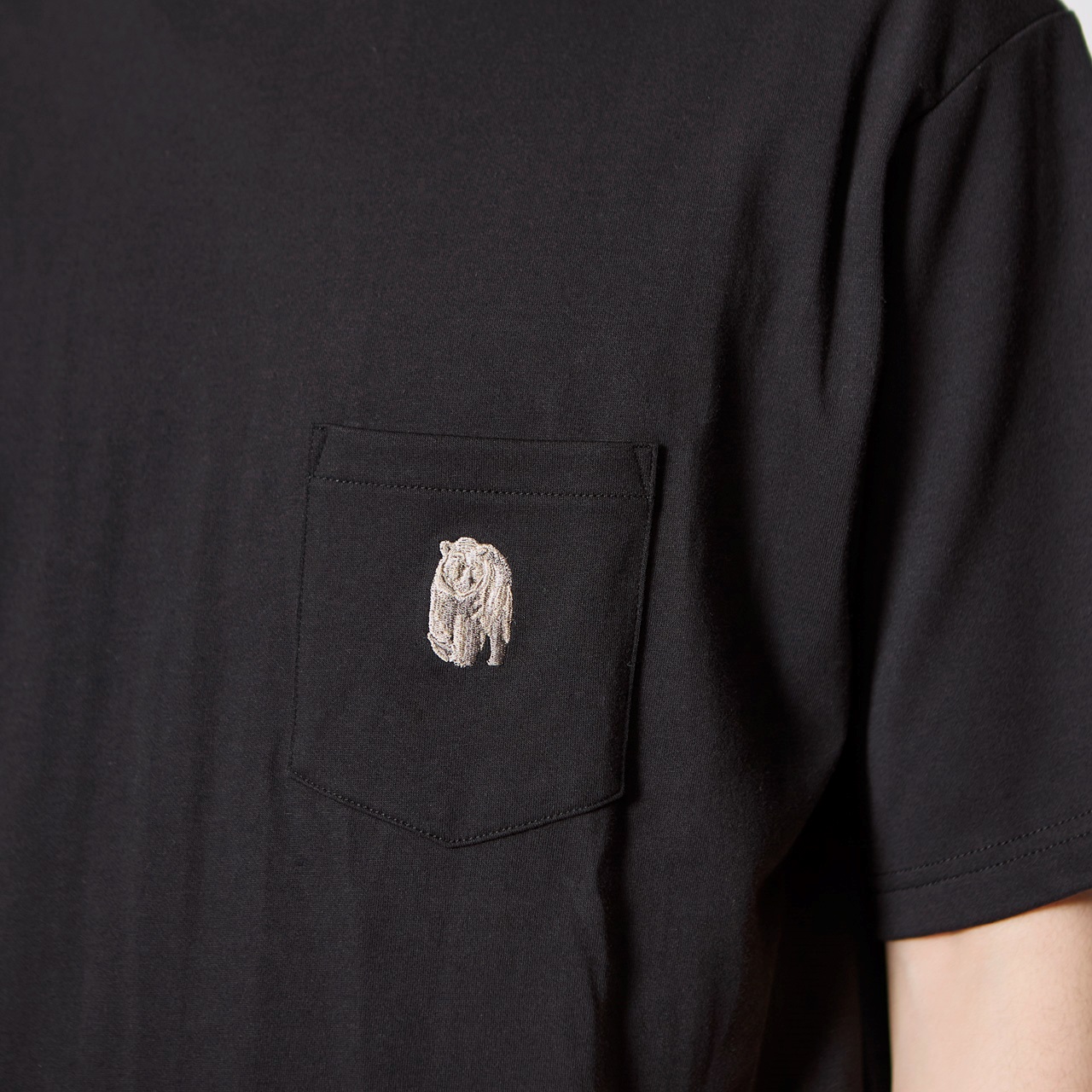ふんわり感のあるダンボールニット素材で着心地に優れたTシャツ。胸のポケットに配した熊をモチーフにした刺しゅうがワンポイントになっています。