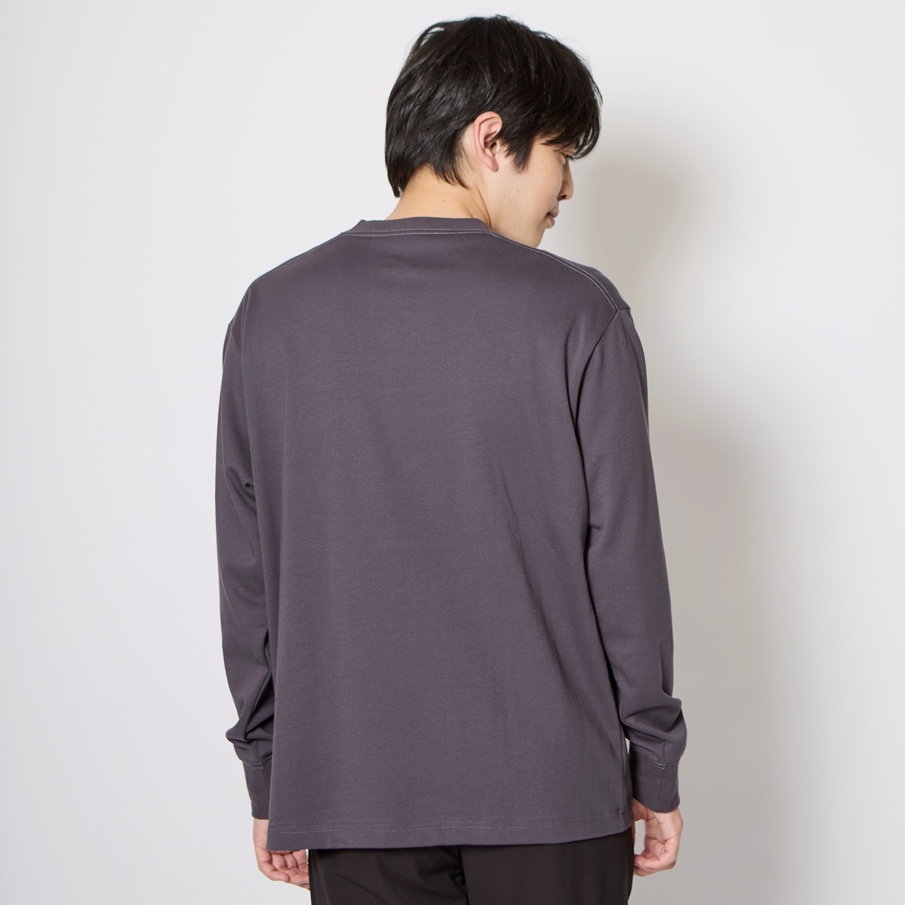 ふんわり感のあるダンボールニット素材で着心地に優れたロングスリーブTシャツ。胸のポケットに配した鷲をモチーフにした刺しゅうがワンポイントになっています。