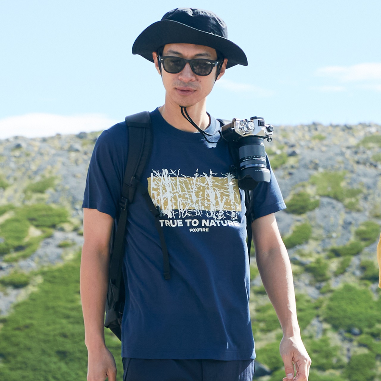 釣りでの遡行中、ふと目線をあげた先に広がるブナの原生林の迫力や神秘さを荒々しくも繊細なイラストで表現。特殊セラミック繊維による遮熱効果で衣服内温度-3℃を実現した「コカゲシールド」素材は、紫外線を遮断することにより、淡色でも高いUV遮蔽率を発揮します。汗ばむ季節の釣行も快適にしてくれる着心地です。