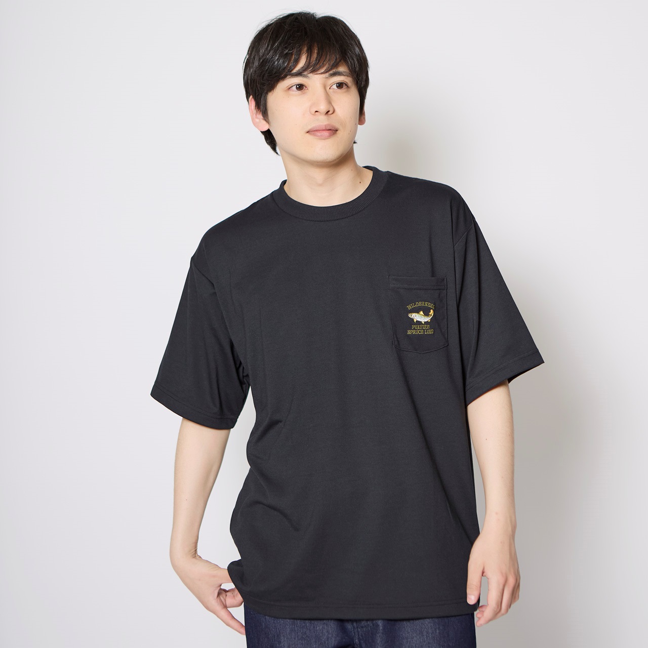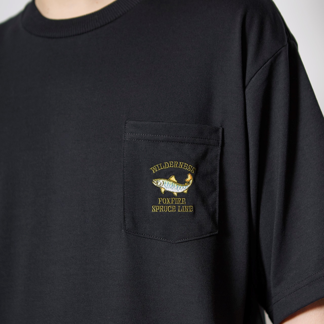コットンタッチで速乾性に優れる異形断面ポリエステル糸「アロードライファイバー」素材のTシャツ。左胸ポケットにヤマメをモチーフとしたポイント刺繍が入ります。サイズカバー率の高いルーズシルエットです。