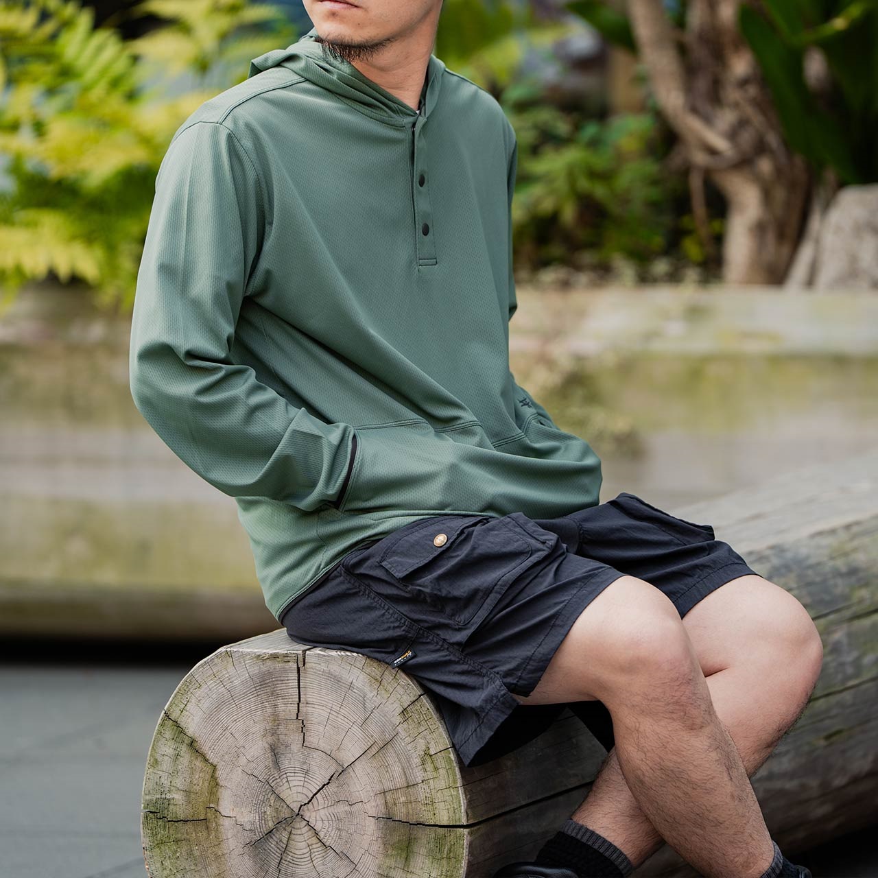 引き裂き、耐摩耗性に強いコーデュラリップストップ素材を採用したショートパンツ。高いストレッチ性のある素材は、起伏のある場所でのアクティブな足運びをサポート。前後には4つの大型ポケット、さらにフロントに配したサブポケットが、より機能的なアウトドア仕様モデルに仕立てています。ウエストはゴム+紐仕様。