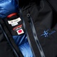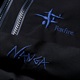 左胸にFoxfireの刺繍ロゴ、右裾にNANGAロゴ、左袖口にWINDSTOPPER PRODUCT by GORE-TEX LABSロゴを配置。日本製。