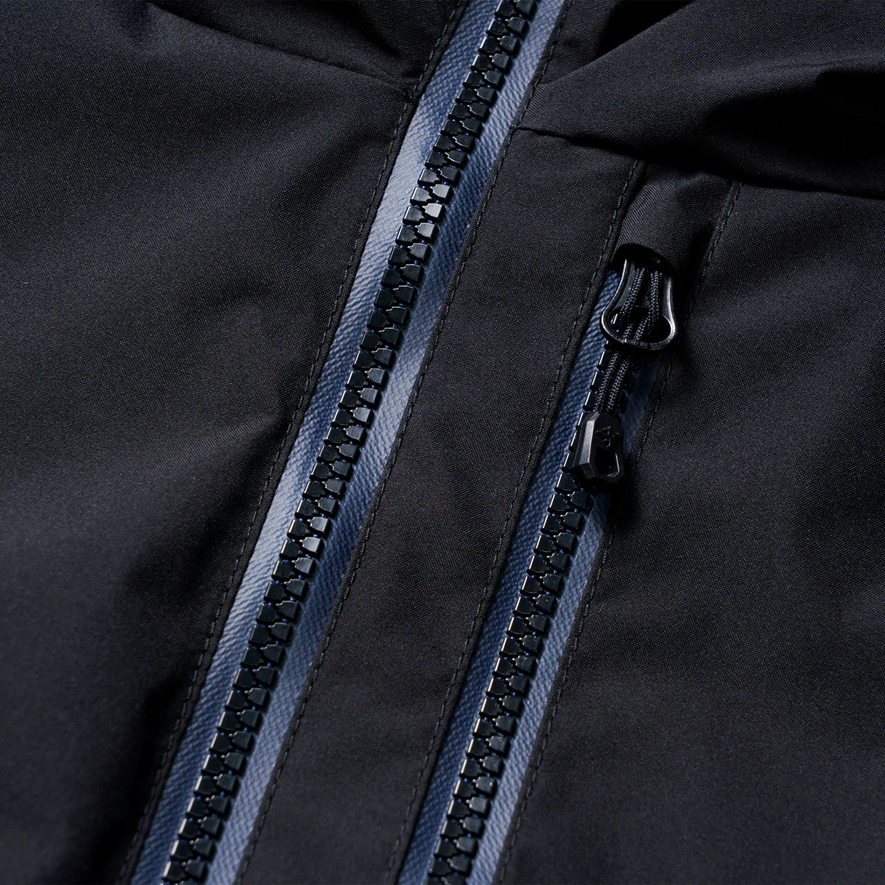 フロントには、存在感のあるYKK製ビスロンアクアガードファスナーを採用。ファスナー部分のエレメントが大きいため、スライダーの動きも滑らか。テープの表面をポリウレタンフィルムでラミネートし、水の侵入を抑えるアクアガードタイプ。