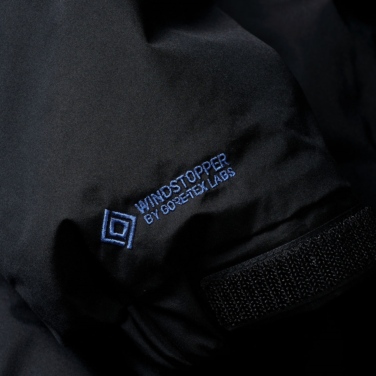 ダウンジャケットの表地には防風透湿性に優れた【WINDSTOPPER® PRODUCT by GORE‑TEX LABS】を採用し、 確実な防風性と耐水性により、小雨や雪が降ってもダウンを濡らすことなく保温性が持続する。