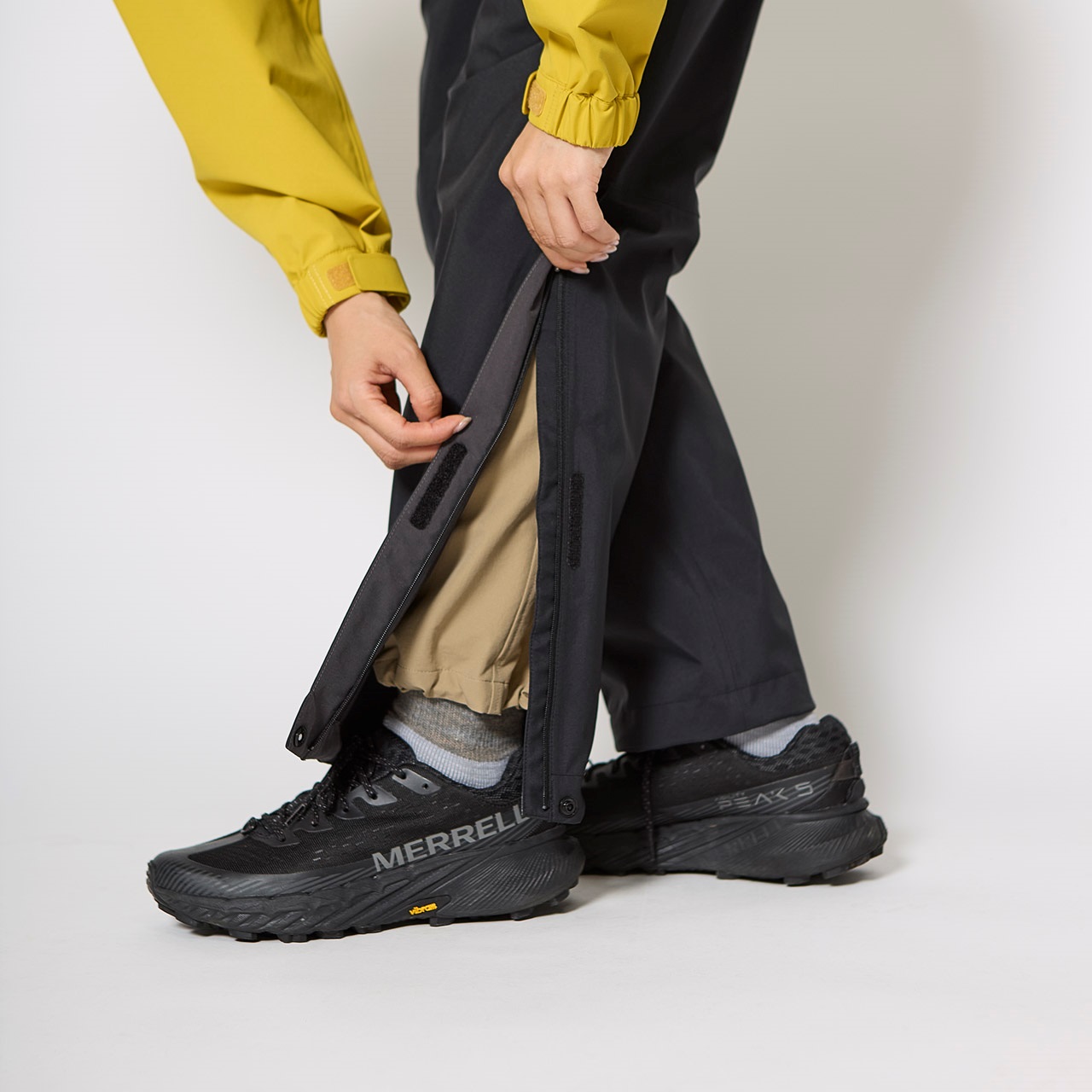 高い透湿防水性を持ち、軽量ながら耐久性にも優れ、PFASフリーも実現した、次世代ゴアテックスファブリクスを採用したレインパンツ。C-KNITバッカーテクノロジーにより、しなやかで快適な着心地を誇ります。サイドファスナーで膝横まで開閉でき、靴を履いたままでも脱ぎ履きが可能。裾にはストッパー付きドローコード付属。