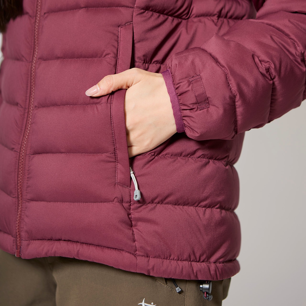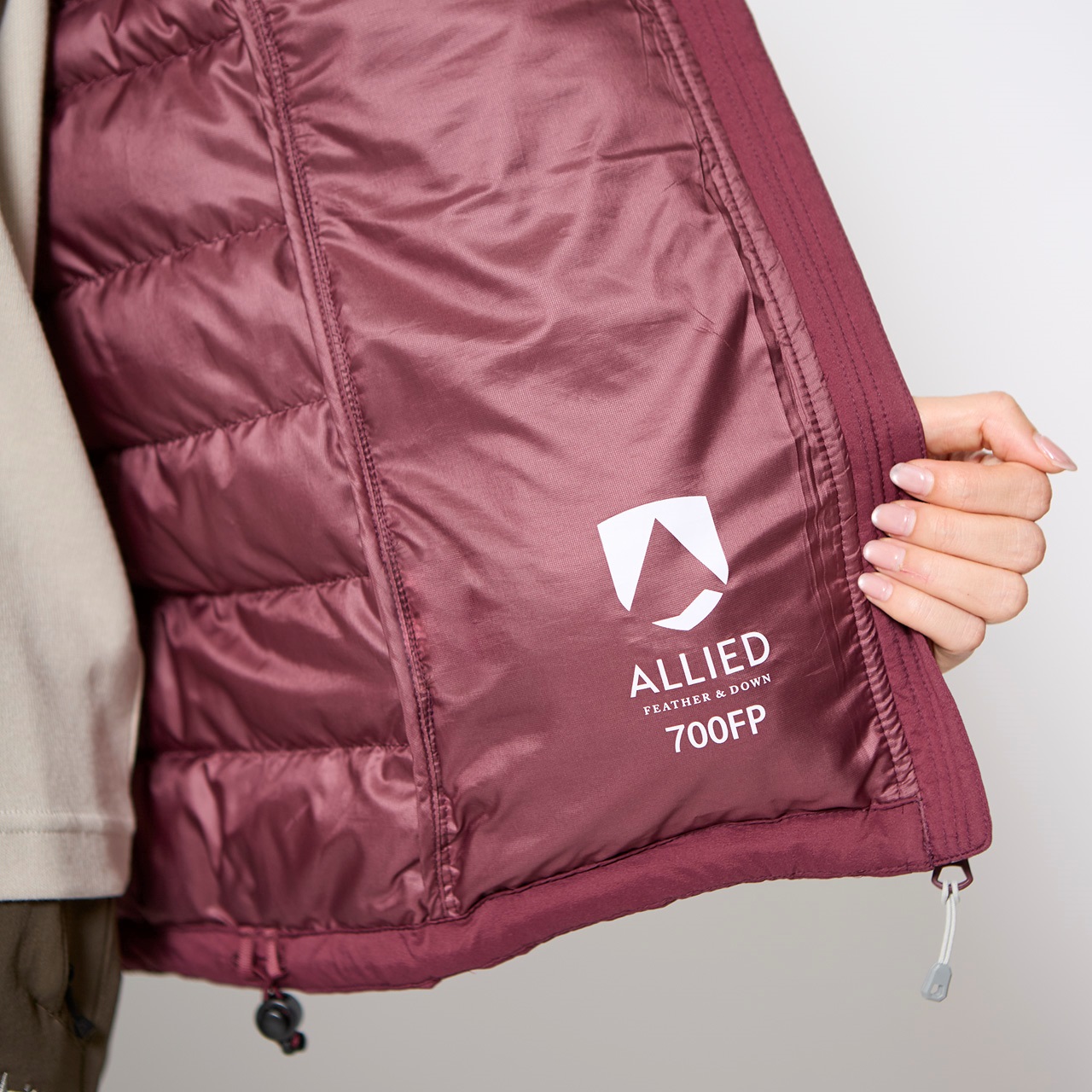 素材:ウーリータフタ20D(ナイロン100%)/裏地:ピスティルファイバータフタ20D(ポリエステル100%)/中わた:アライドダウン700FP(ダウン80%・フェザー20%)78g