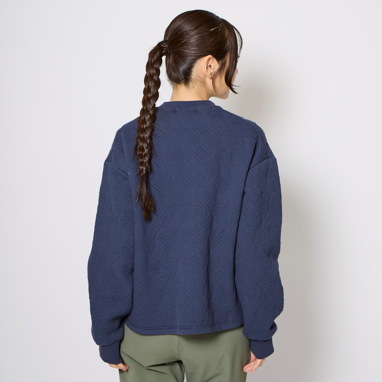 オリジナルケーブル柄のカジュアルなクルーネックトップス。多層構造のダンボールニット素材で空気を溜めこみ保温性に優れています。ゆったりめシンプルなデザインで様々なコーディネートが楽しめます。