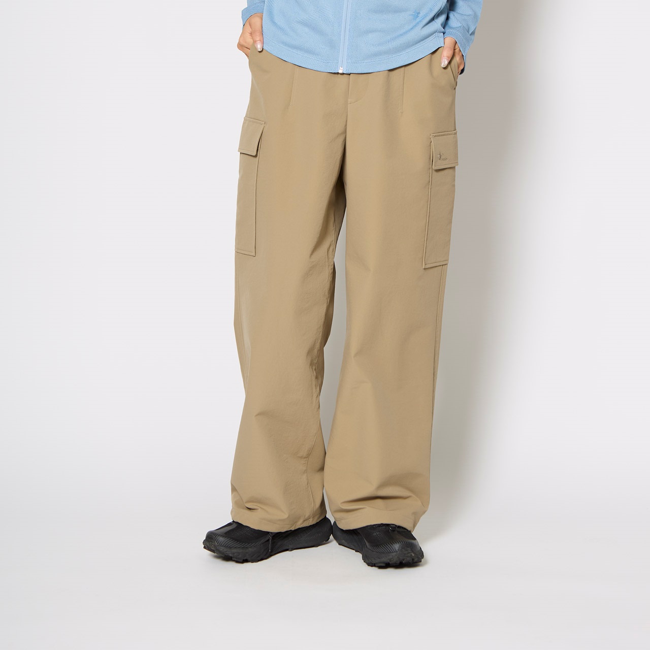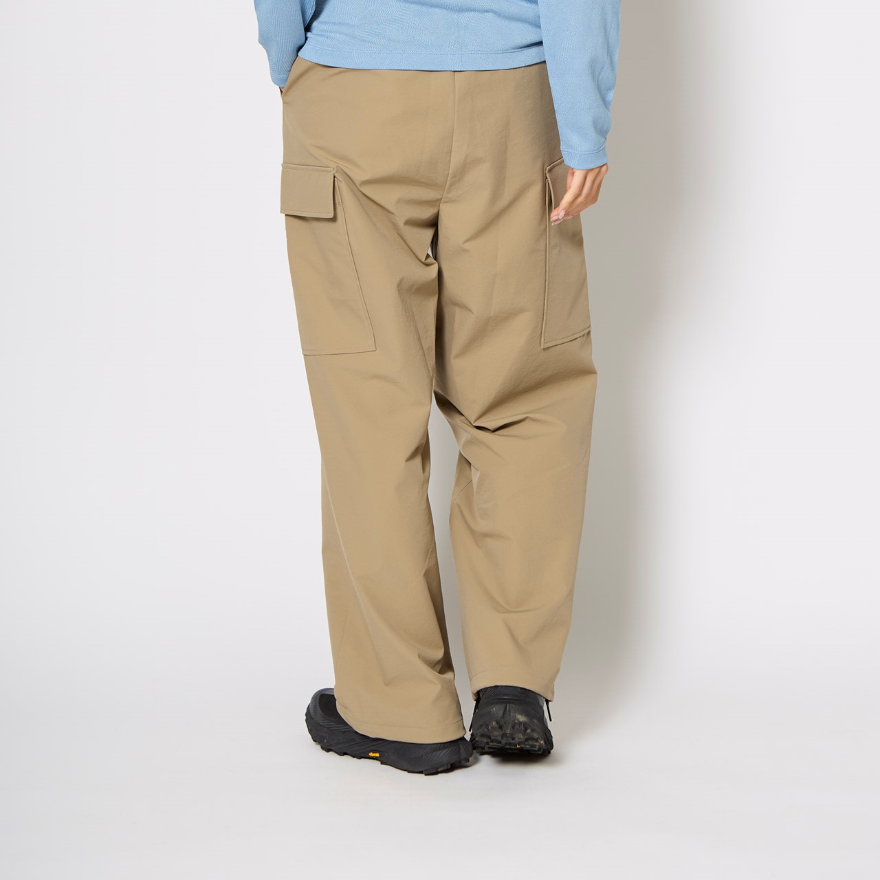防虫、UVカット機能を持つスコーロン素材のサイドカーゴパンツ。盛夏の着用も考慮し、薄さとストレッチ性を重視した生地を採用しました。ゆったりとしたシルエットのためシーンを選ばずに着用できます。裾には調節可能なアジャスターが付属。全7個(前3個、サイド2個、後ろ2個)のポケットで収納力に優れています。