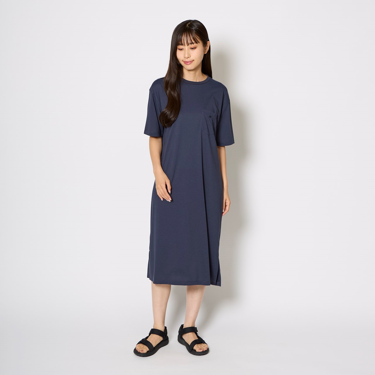 防虫、吸汗速乾、UVカット機能に優れたトランスウェット・スコーロン素材のワンピース。ポリエステル100%でサラッとした着心地ながら、中肉タイプでコットンライクな生地感により、山小屋泊のリラックスウェアからデイリーユースまで幅広く着用できるアイテムです。左胸にポケット付属。