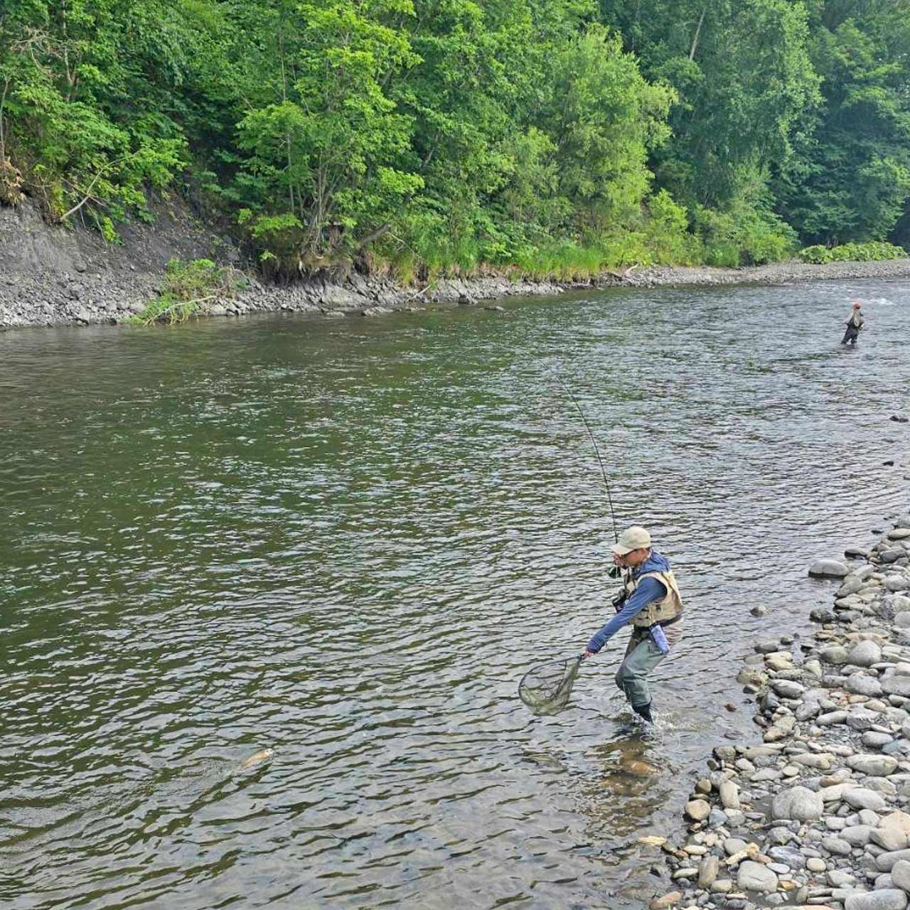 ロッド、リール、フライなどのタックルの他に、雨天決行ですので、レインウェアーをお持ちください。また、ウェーダーも必要となります。