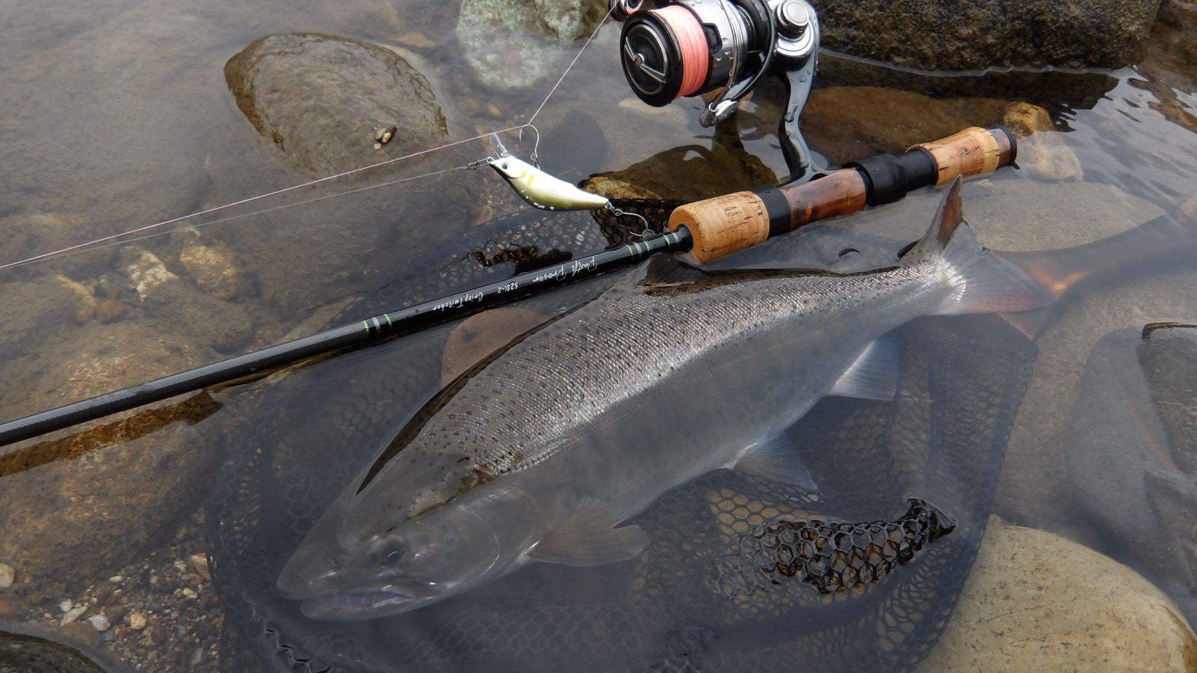 この河川に遡上してきた個体なのか、居着きの山女魚がこの河川で銀毛した個体なのか確証は得られないのだが、どちらにせよ満足のいく一尾であった。