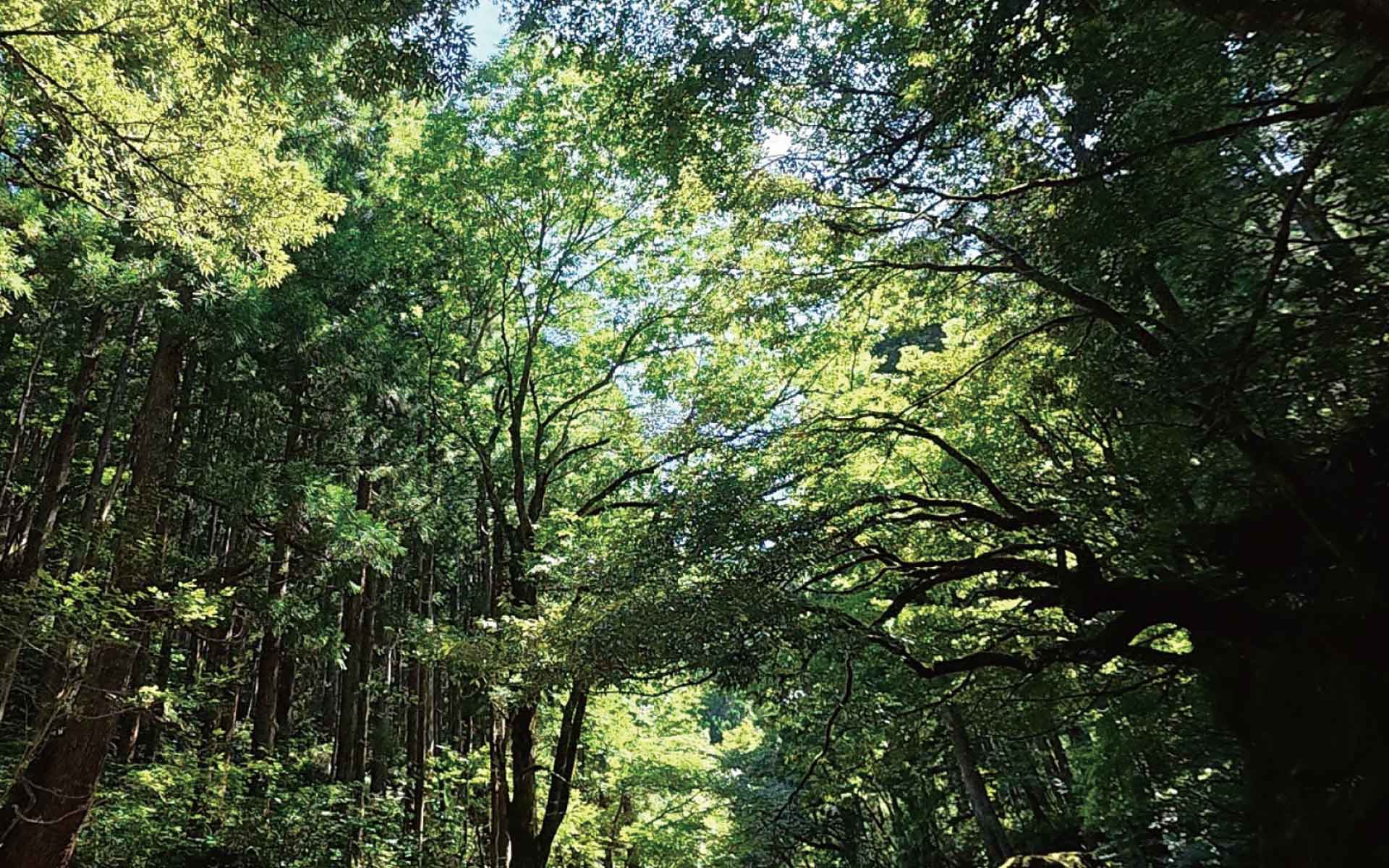 本流から支流に入ると岩盤帯の滑床で形成された細い谷がつづく。まだまだ緑が濃い木々で覆われており、昇り切っていない太陽の光が葉の隙間から差し込んで眩しい。