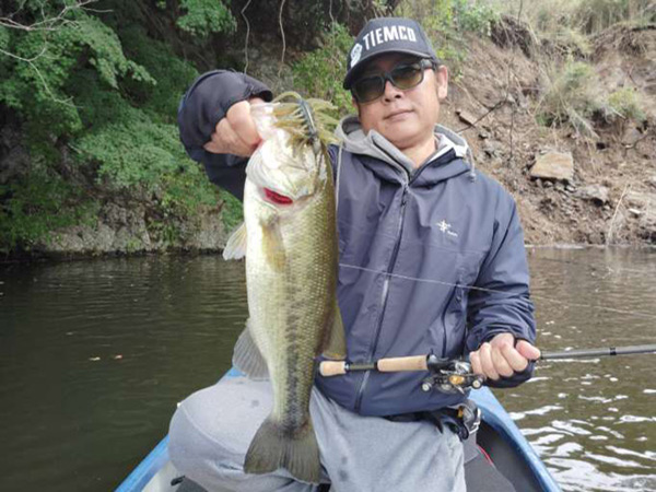 その後エリアを変え、誰もが打つであろう崩落をハリネズミのテキサスリグで細かく打ち強烈なバイト!見事な40UPでした。