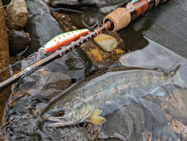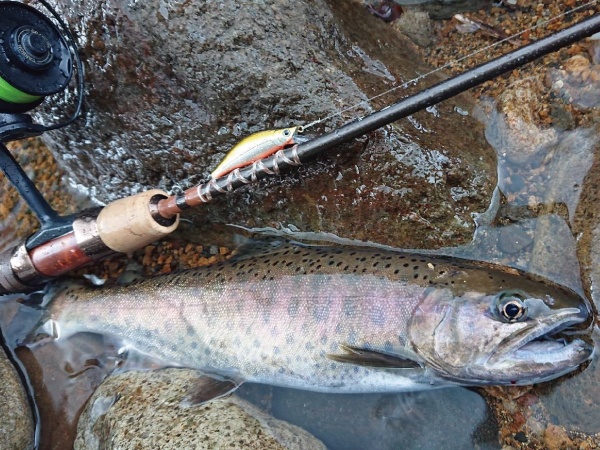 レギュラーサイズのトラウトでもしっかりと曲がり、不意の大物でもロッド全体で追従しキャッチ可能です。