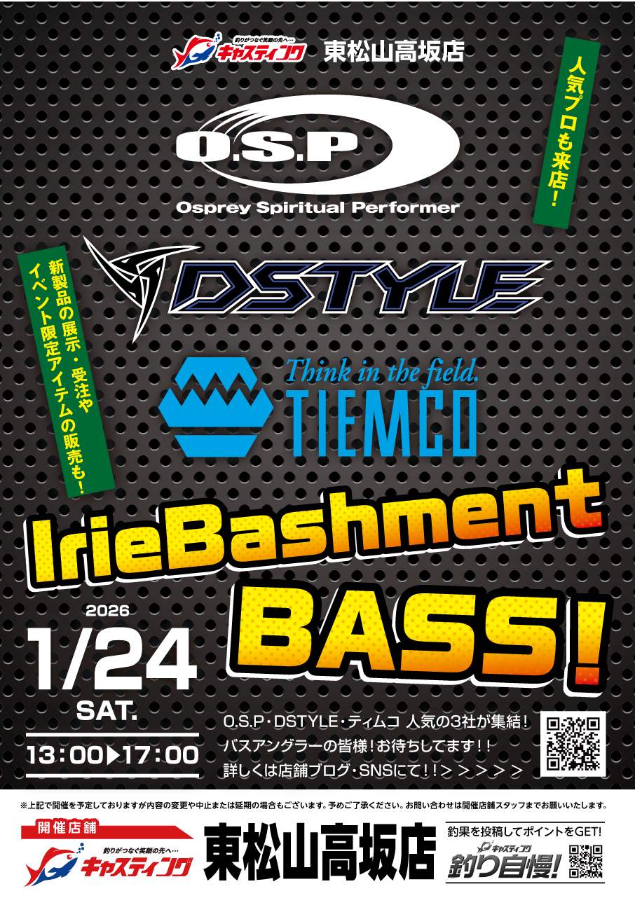 1月24日土曜日、キャスティング東松山高坂店にて行われる3社合同バスミーティングに出展いたします。