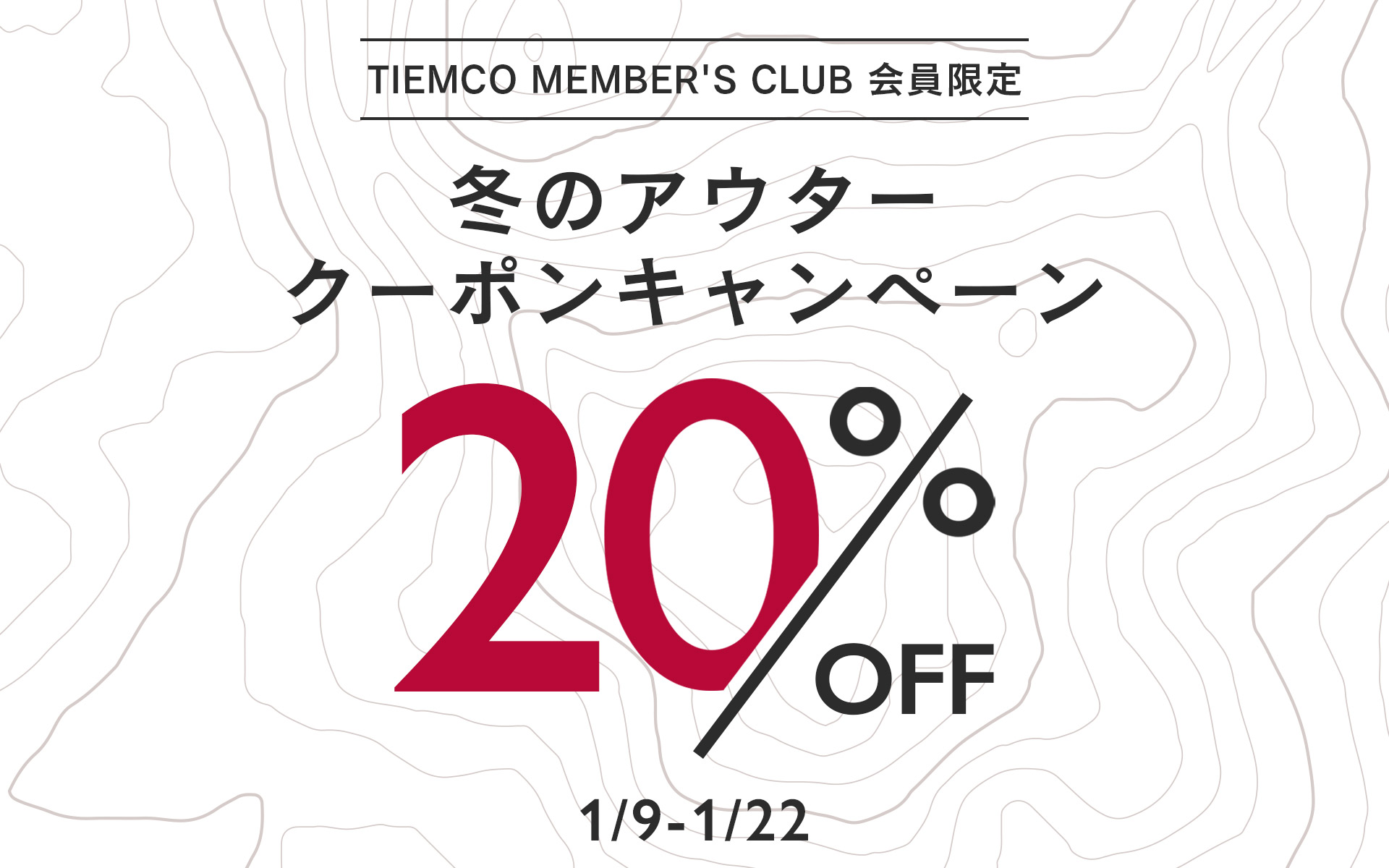 1/9(金)~1/22(木)の期間限定で、「ティムコオンラインストア会員」限定で使える20%OFFクーポンキャンペーンを開催!