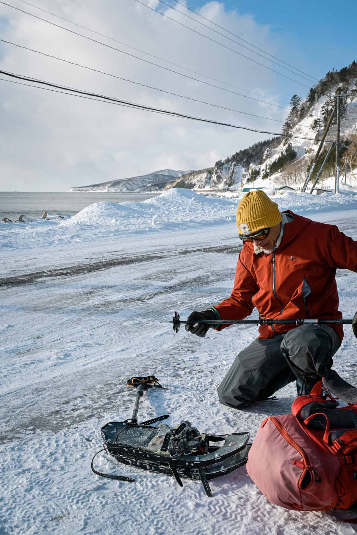 2月下旬のよく晴れた日の朝、石田理一郎さんと待ち合わせたのは羅臼の町中から半島の先へと16kmほど行ったルサ川の河口。ここは知床の豊かな生態系が凝縮された川なのだという。