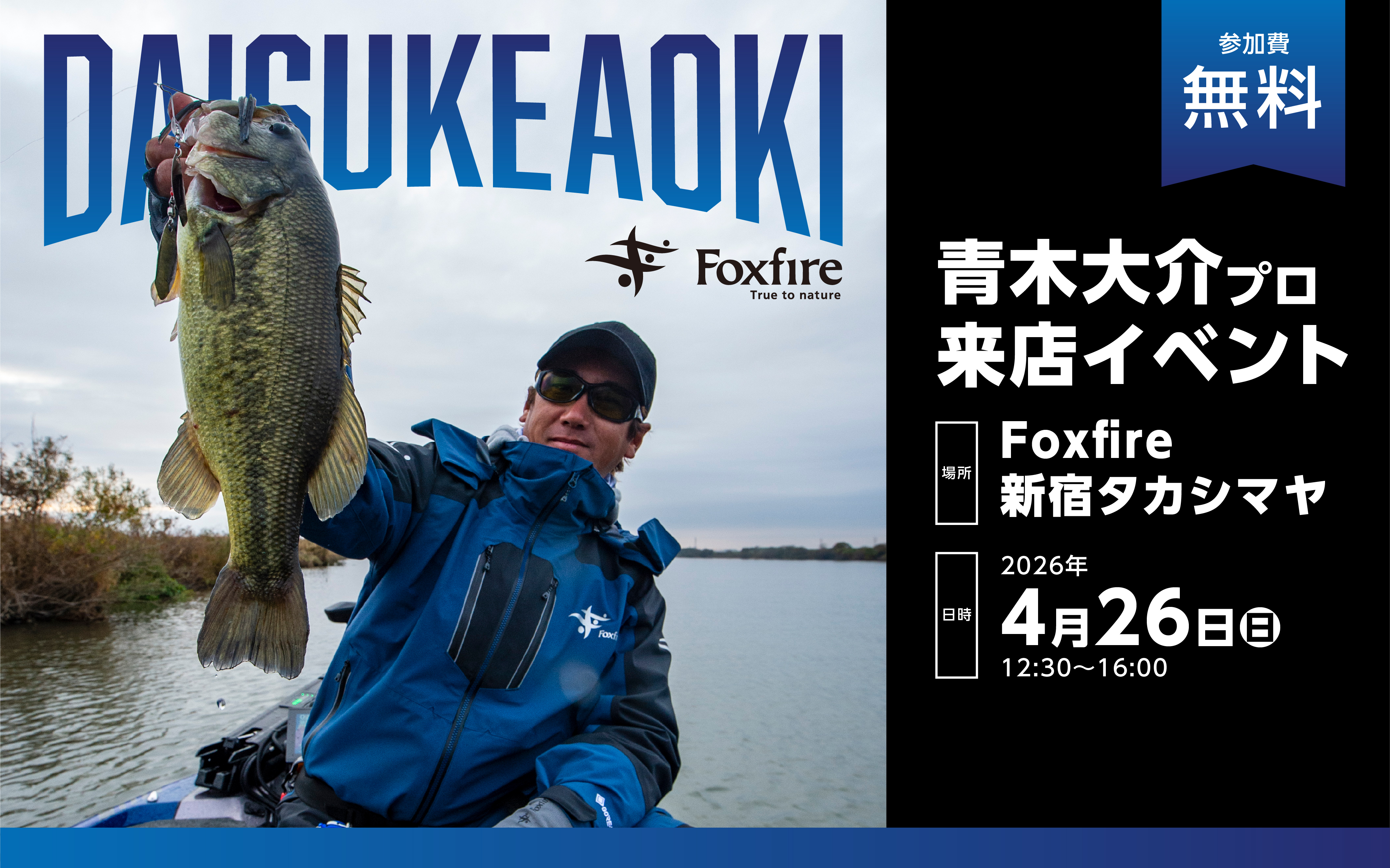 昨年、JBワールドチャンピオンとBasserオールスタークラシック優勝の二冠を獲得した、青木大介プロが、Foxfire新宿タカシマヤに来店。