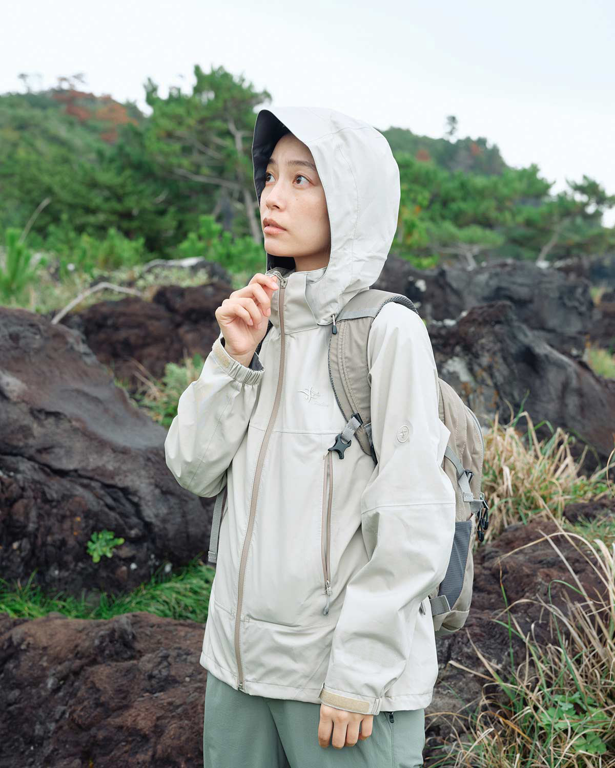 1Dayハイクをはじめとした様々なアウトドアシーンにフィットする防水ジャケット。取り外し可能なフードはシーンに合わせて使い分けも可能。